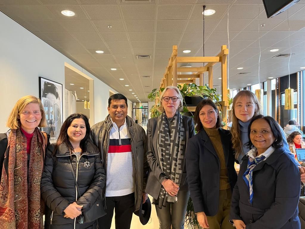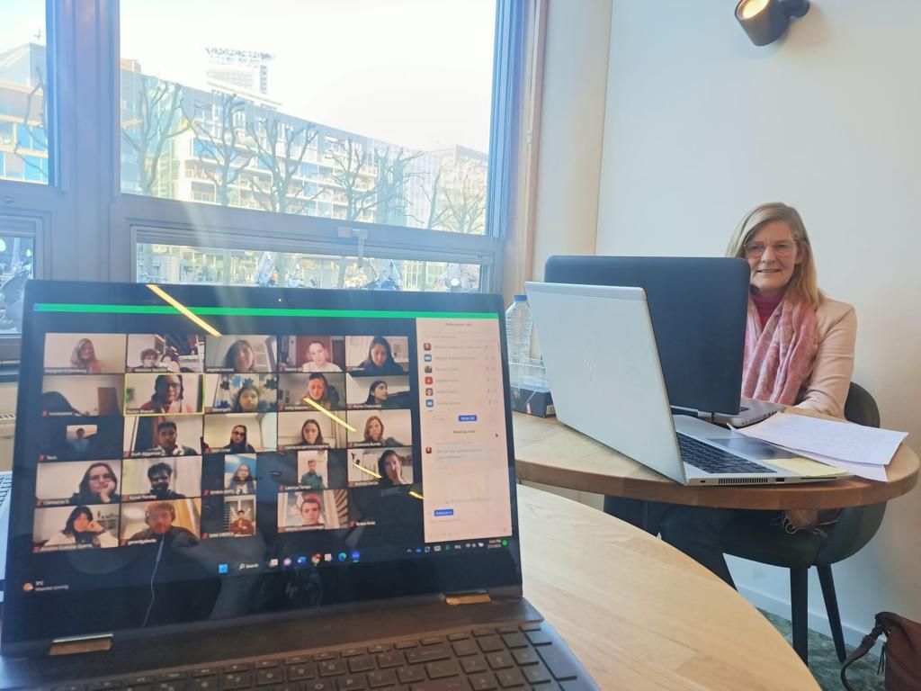 Arrival of COIL colleagues from Spain and India at THUAS with in the middle Laurian Hollander, Programme Manager European Studies, The Hague University of Applied Sciences, 22 March 2023.