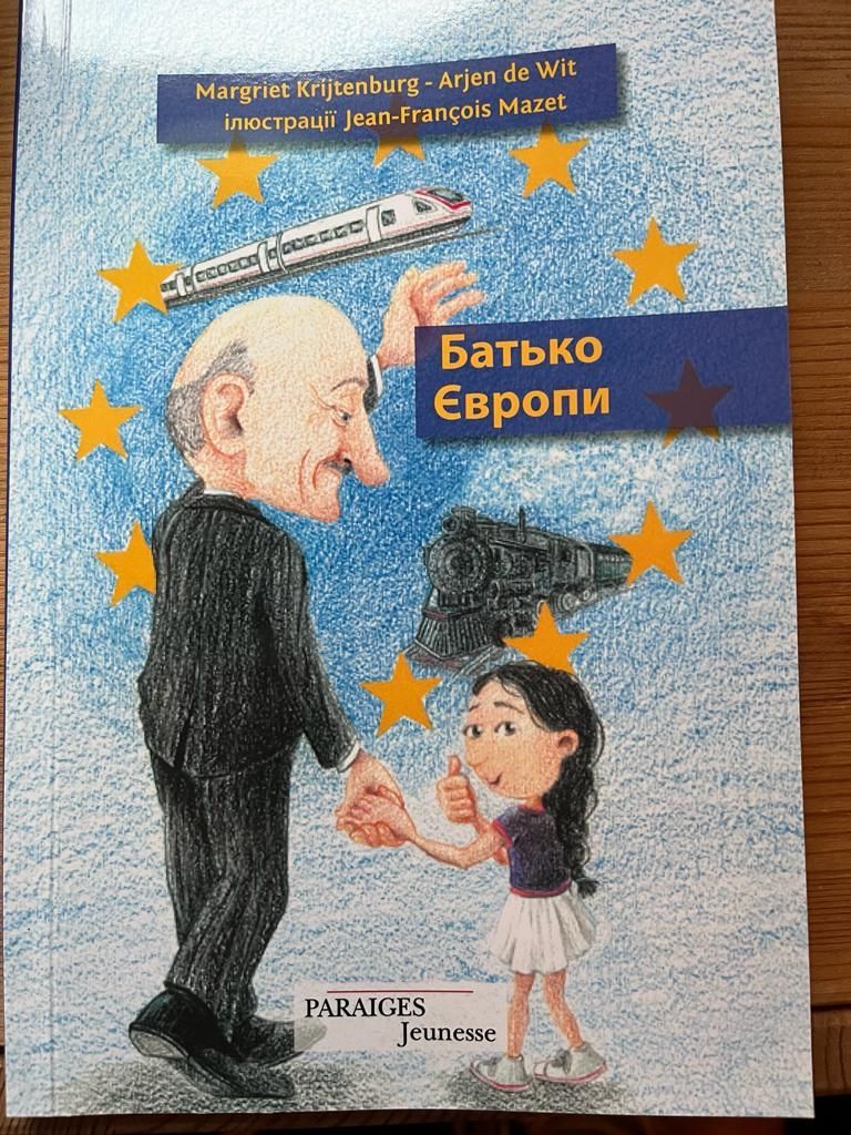French, German and English copies of Krijtenburg’s children book of The Father of Europe, as sold in the Maison Robert Schuman, Scy-Chazelles (Metz).