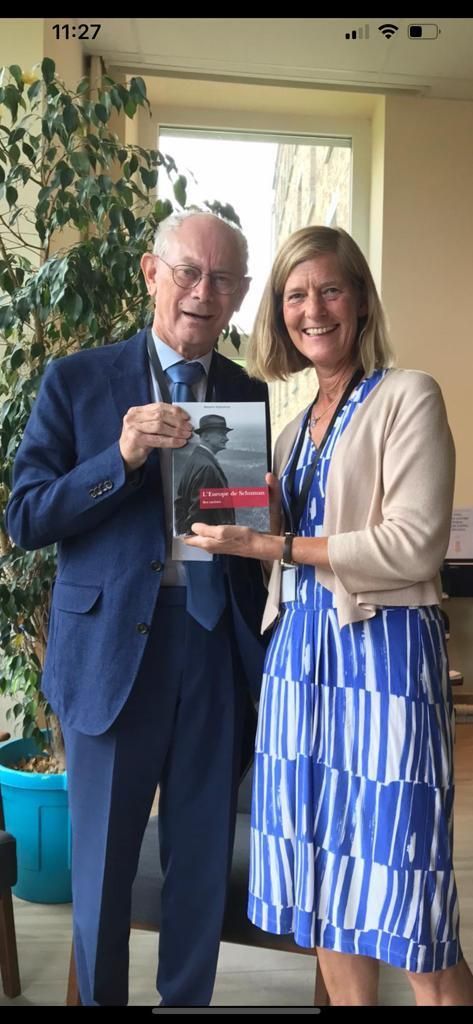 Presentation to Herman van Rompuy, first President of the EU, of French version of PhD thesis on Schuman’s Europe, his frame of reference during the Study days on “European democracy in times of confusion”, in Namen, Belgium, 16-18 September 2022.